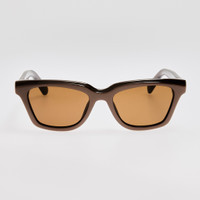 The Carre sunglasses showcase a rich metallic brown acetate frame shaped into a bold D-frame silhouette. Featuring solid brown lenses, sculpted nose pads ensure a comfortable fit throughout the day. The temples are detailed with gold branding, adding a refined and luxurious touch. Details -Country of origin: Japan -100% UV protected lenses -Acetate frame with acetate temples -sku:JAC109C1SUN Size & Fit 63mm lens width 12mm bridge width 135mm temple length