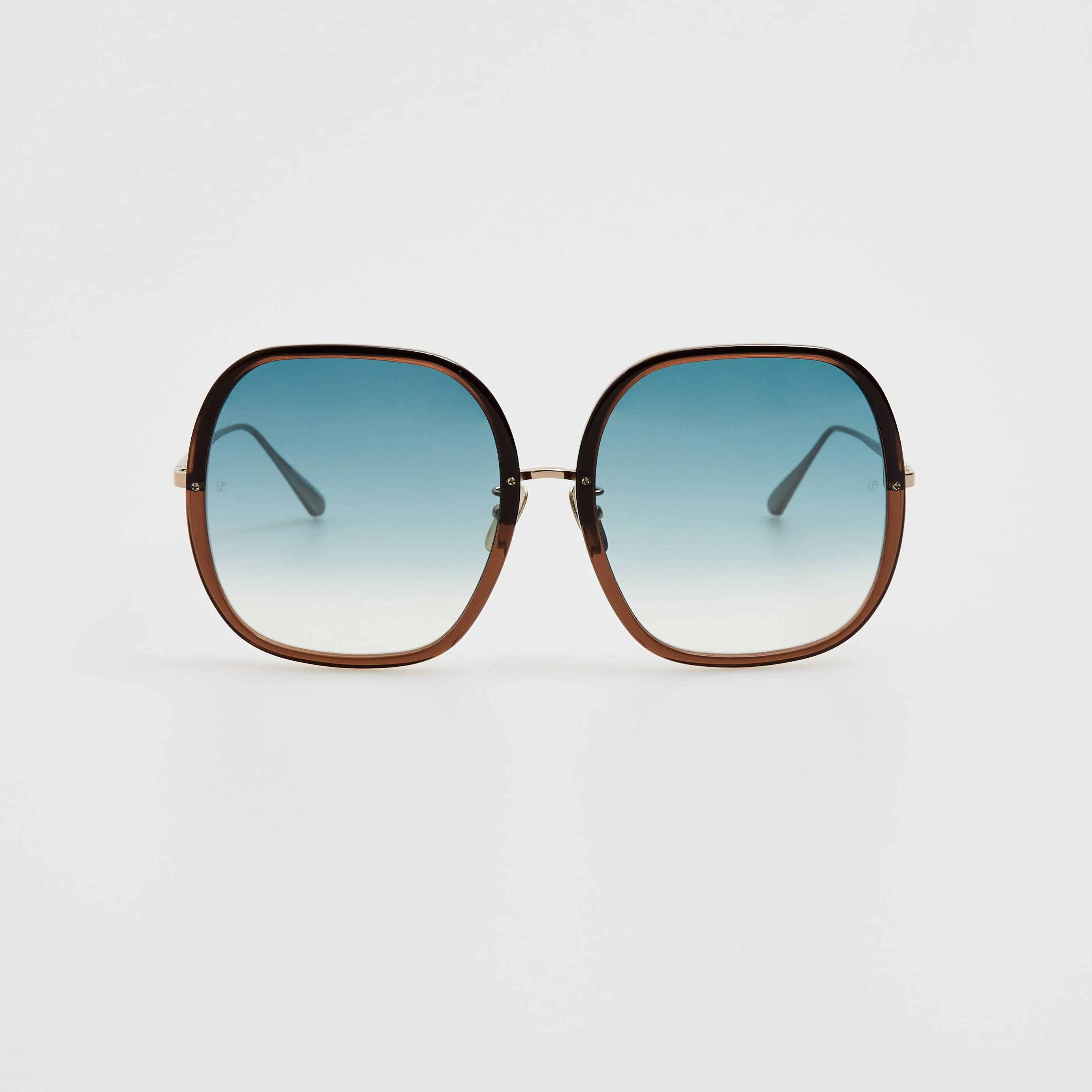 Sculpted from luxurious brown acetate and set on delicate light gold-plated titanium temples, the oversized Celia sunglasses exude sophistication. Fitted with aqua gradient lenses. Fitted with blue gradient lenses which offer 100% UV protection. Adjustable nose pads allow a tailored fit. Details -Country of origin: Japan -100% UV protected solid lenses -Acetate frame with acetate temples -Acetate Made in Italy -sku:LFL1405C6SUN Size & Fit 62mm lens width 16mm bridge width 146mm temple length