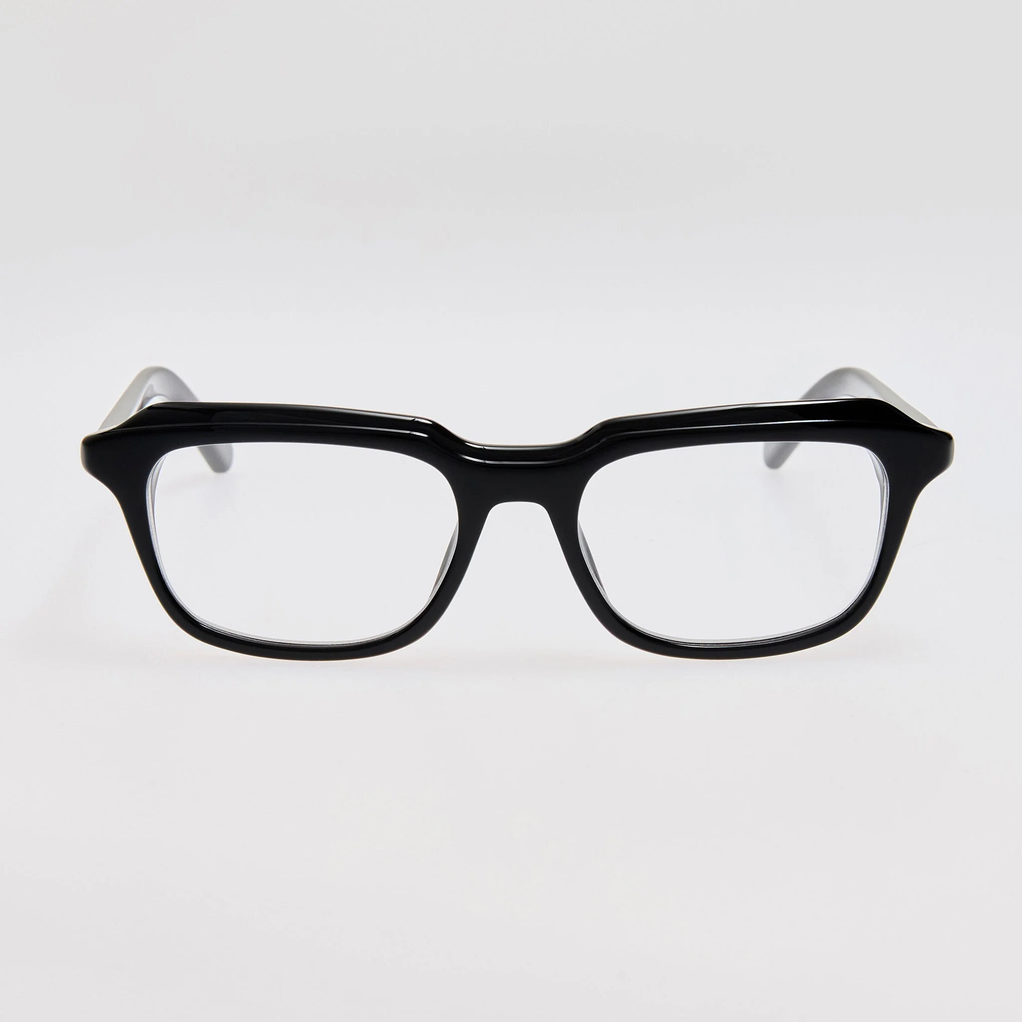The Citta frame features an angular silhouette crafted from black acetate. Sculpted nose pads offer a comfortable fit, while temples are finished with refined silver branding. Details -Country of origin: Japan -Optical lens free from prescription -Acetate frame with acetate temples -sku:JAC95C1OPT Size & Fit 63mm lens width 12mm bridge width 135mm temple length