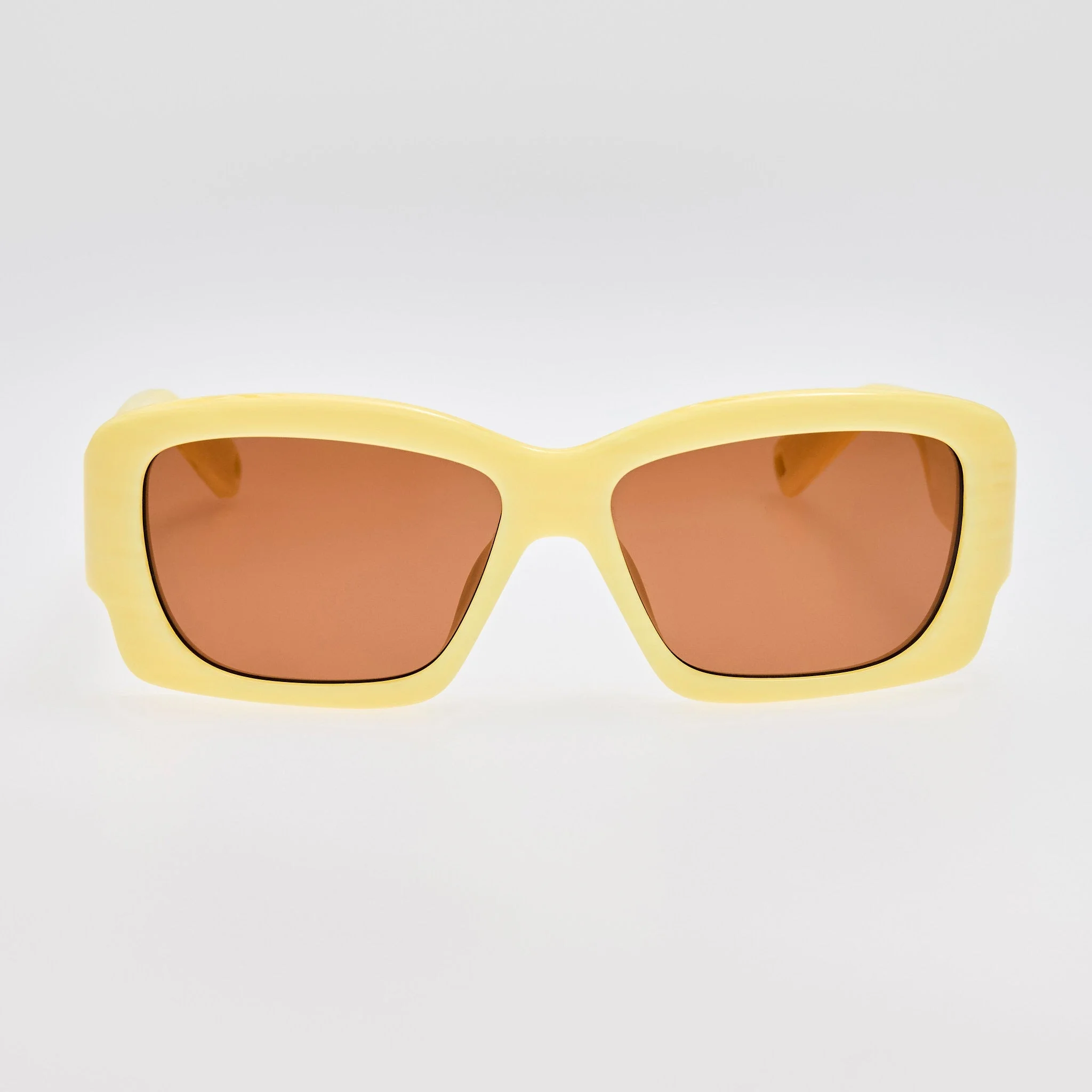 The Croisiere frame blends a rectangular silhouette with pastel yellow striped acetate and brown lenses. Sculpted nose pads and gold-detailed temples bring signature elegance. Details -Country of origin: Japan -100% UV protected lenses -Acetate frame with acetate temples -sku:JAC60C6SUN Size & Fit 63mm lens width 12mm bridge width 135mm temple length