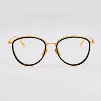 Sculpted from 22 carat yellow gold-plated pure Japanese titanium and featuring black rim, the Dahlia in Black is a refined oval optical frame that balances delicate engineering with timeless elegance. Adjustable nose pads ensure all-day comfort, while the lightweight construction offers an effortlessly refined silhouette. Details -Country of origin: Japan -Optical lens free from prescription -Titanium frame with titanium temples -sku:LFL1580C1OPT Size & Fit 52mm lens width 18mm bridge width 145mm temple length