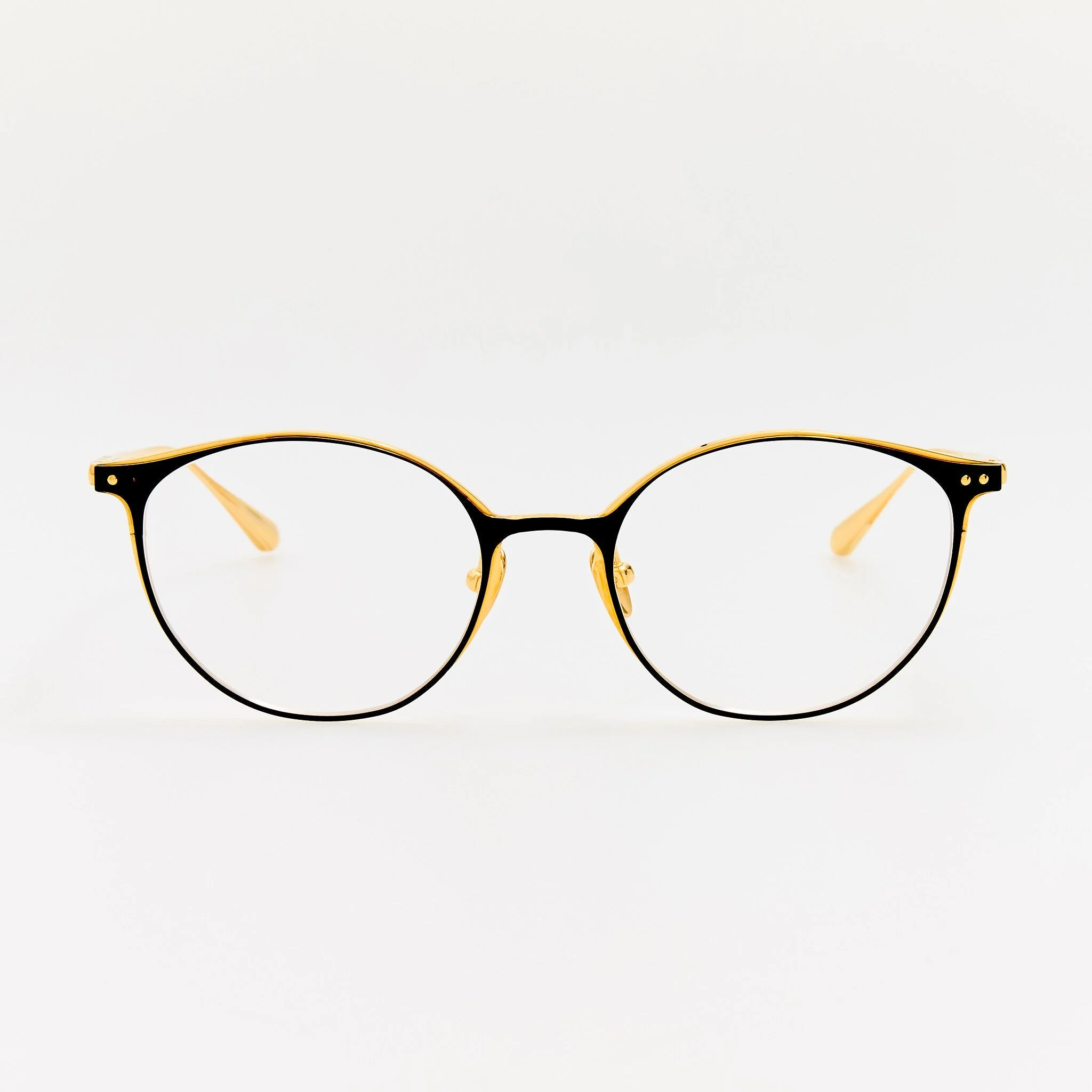 The Daley oval optical frame features a satin black painted rim encircled by a contrasting 22K yellow gold-plated pure Japanese titanium framework, blending luxury with modern style. This frame is fitted with adjustable nose pads for a comfortable, bespoke fit. Details -Optical lens free from prescription -Titanium frame with titanium temples -Titanium Made in Japan -sku:LFL1632C1OPT Size & Fit 52mm lens width 20mm bridge width 145mm temple length