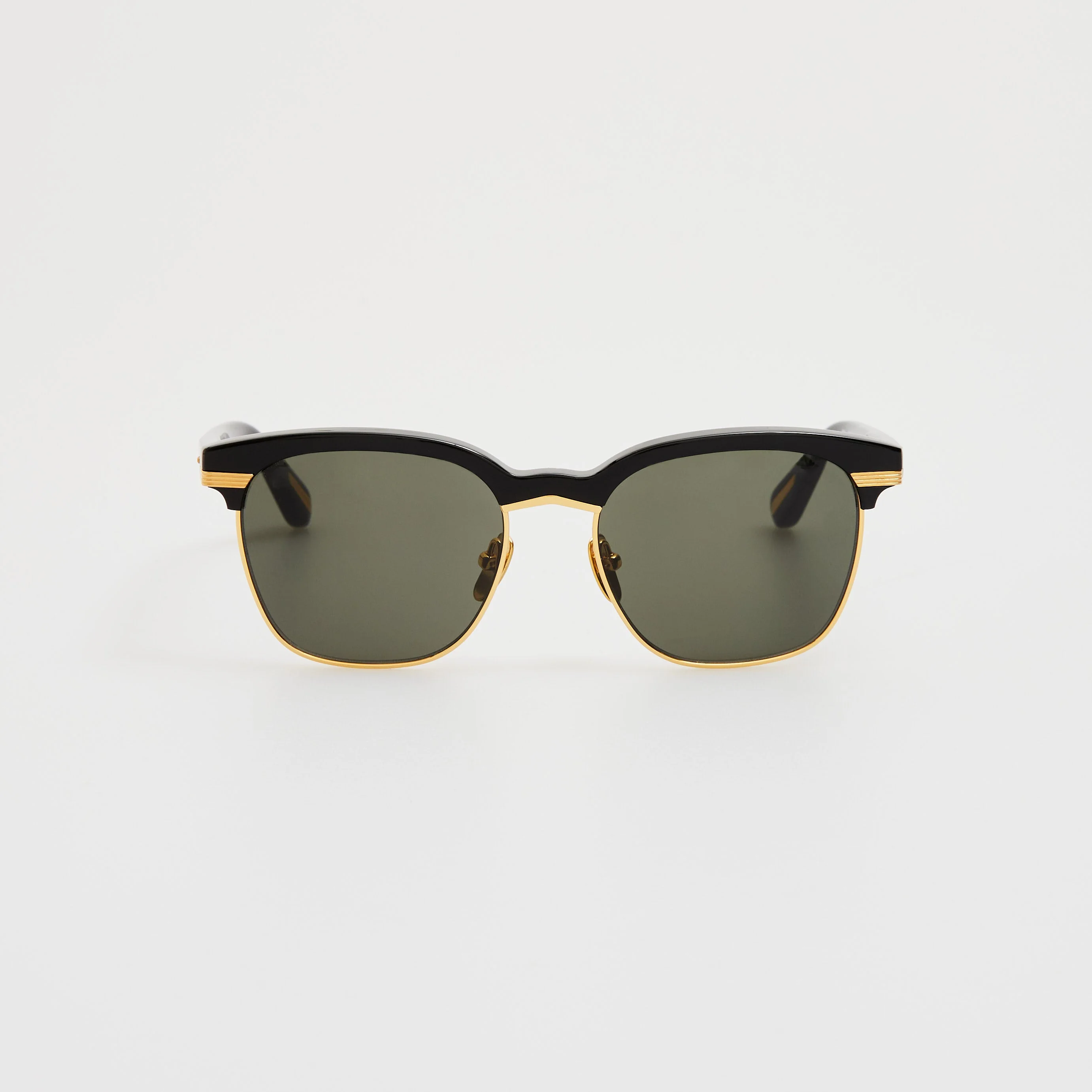 Introducing Darin frame, crafted with a black acetate frame and yellow gold titanium nose pads ,the frame offers both style and comfort. The sturdy d frame design provides a modern touch, while the high-quality materials ensure durability. Fitted with grey solid lenses. Details -Country of origin: Japan -100% UV protected solid lenses -Acetate frame with acetate temples -Acetate Made in Italy -sku:LFL1518C1SUN Size & Fit 54mm lens width 18mm bridge width 140mm temple length "