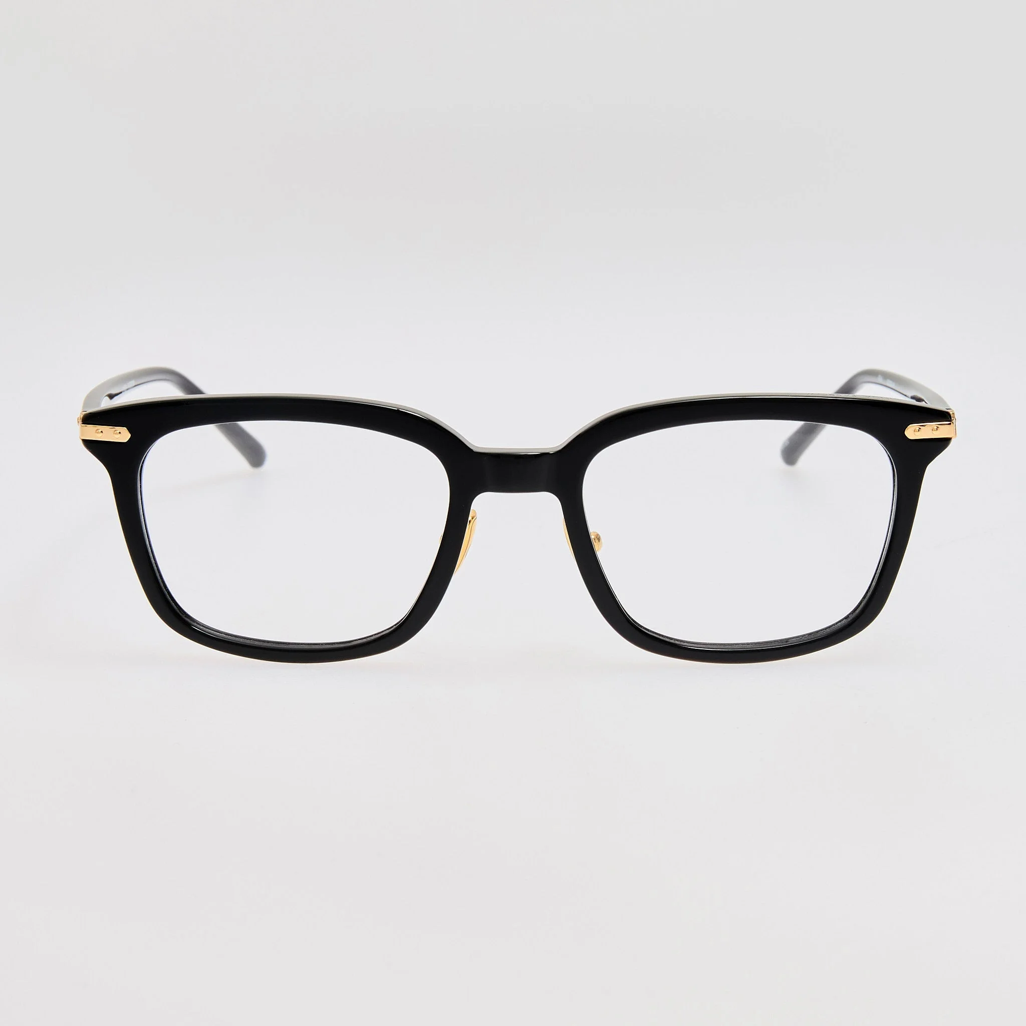 The Diller optical frame is crafted from black Italian acetate. Featuring a classic D-frame silhouette, this design is elevated by 22 carat light gold-plated hardware for a subtle touch of luxury. Laminated sculpted nose pads ensure comfort and stability, making it an ideal companion for all-day wear. Details -Country of origin: Japan -Optical lens free from prescription -Acetate frame with acetate temples -sku:LF94AC1OPT Size & Fit 52mm lens width 20mm bridge width 145mm temple length