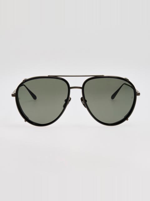 Crafted from pure Japanes titanium, the sunglasses have a black frame with an engineered side shield in matt nickel The style is finished wirth the signature LINDA FARROW temple.Fitted with solid grey lenses, offering anti-glare and UV protection the frame is fitted with adjustable nose pads offer a tailored fit by allowing bespoke positioning for enhanced comfort. Details -Country of origin: Japan -100% UV protected lenses -Titanium frame with titanium temples -LFL1362C4SUN Size & Fit 62mm lens width 17mm bridge width 145mm temple length