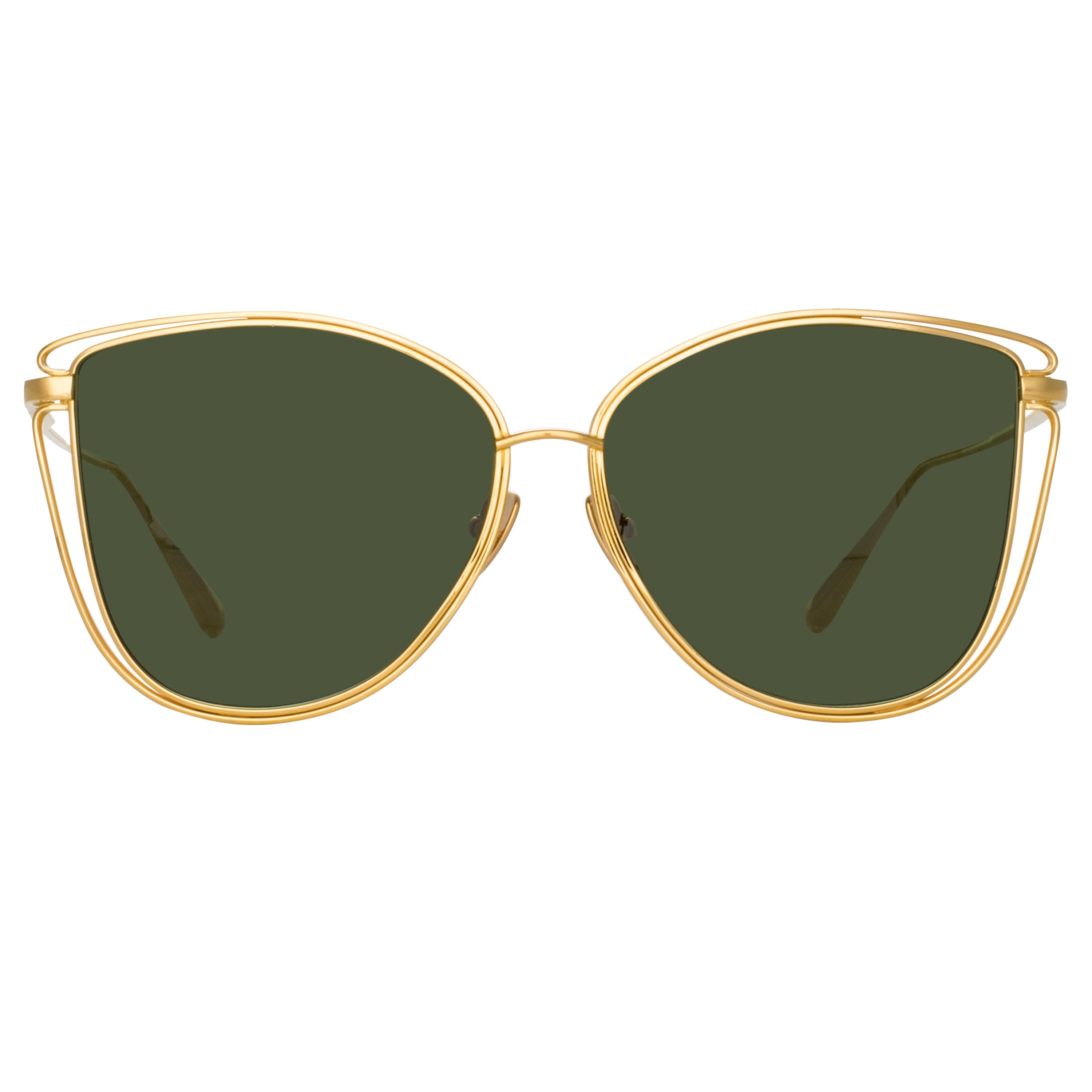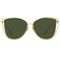 Introducing the Dinah Sunglasses. These oversized Linda Farrow sunglasses take the cat eye to the next level. The yellow gold frame is paired with green lenses. Details -100% UV protected demo lenses -Titanium frame with titanium temples -Made in Japan -sku:LFL1422C3SUN Size & Fit 59mm lens width 14mm bridge width 145mm temple length
