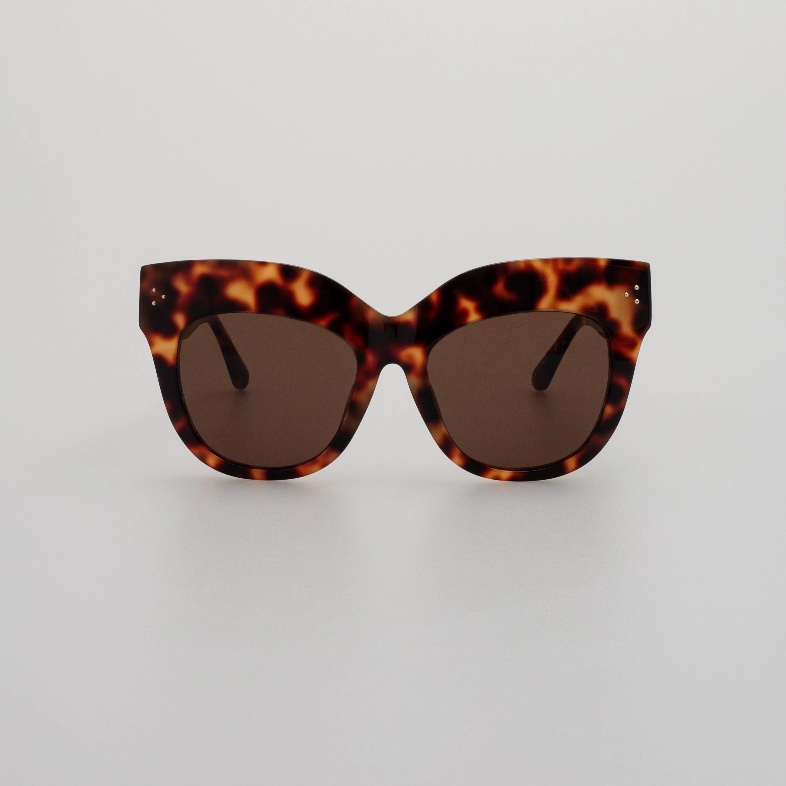 An iconic part of the collection, the Dunaway sunglasses are the embodiment of LINDA FARROW statement style. These exaggerated brow cat eye sunglasses are formed from rich tortoise shell acetate with sculpted nose pads and temple tips to provide comfort to the wearer. Keep your frames protected in the LINDA FARROW travel case.