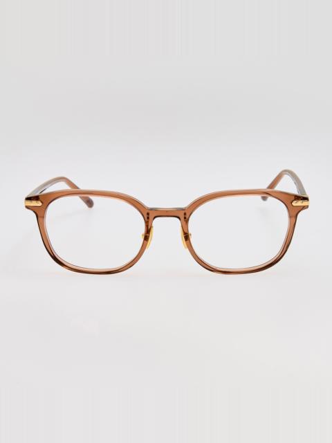 The Ernst optical frame is crafted from black Italian acetate. Featuring a classic D-frame silhouette, this design is elevated by 22 karat yellow gold-plated hardware for a subtle touch of luxury. Laminated sculpted nose pads ensure comfort and stability, making it an ideal companion for all-day wear. Details -Country of origin: Japan -Optical lens free from prescription -Acetate frame with acetate temples -sku:LF92AC1OPT Size & Fit 49mm lens width 19mm bridge width 145mm temple length