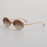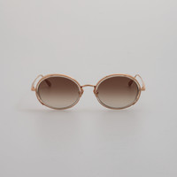These oval sunglasses from the LINDA FARROW collection combine a rose gold plated rim with meticulously etched oval brows for an eye catching finish. Balanced with a sleek tapered temples and fitted with brown ZEISS technology sunglass lenses for optimum clarity and UV protection. Keep your frames protected in the LINDA FARROW travel case. Details -100% UV protected gradient lenses -Titanium frame with tianium temples -Made in Japan -sku:LFL1413C3SUN Size & Fit 52mm lens width 21mm bridge width 146mm temple length