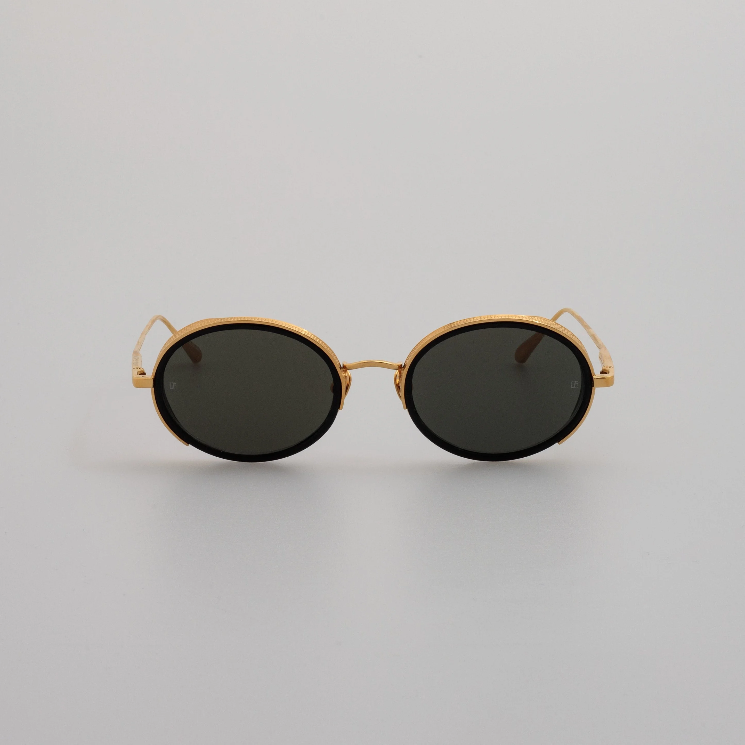 These oval sunglasses from the LINDA FARROW collection combine a yellow gold plated rim with meticulously etched brows for an eye catching finish. Balanced with a sleek tapered temples and fitted with grey ZEISS technology sunglass lenses for optimum clarity and UV protection.