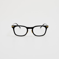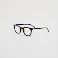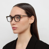 Inspired by strong architectural lines, these D-Frame optical glasses are crafted from black hand polished acetate and ultra lightweight yellow gold titanium temples. Fitted with adjustable nose pads. Details " -Country of origin : Japan -Optical lens free from prescription -Acetate frame with acetate temples -Acetate Made in Italy -sku: "LF90AC1OPT Size & Fit 48mm lens width 21mm bridge width 145mm temple length