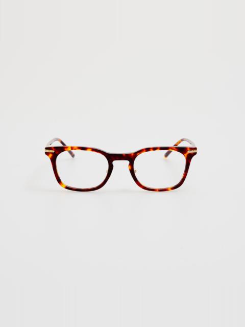 Inspired by strong architectural lines, these D-Frame optical glasses are crafted from caramel horn hand polished acetate. Fitted with adjustable light gold nose pads. Details " -Country of origin : Japan -Optical lens free from prescription -Acetate frame with acetate temples -Acetate Made in Italy -sku: "LF90AC4OPT Size & Fit 48mm lens width 21mm bridge width 145mm temple length