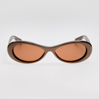 Crafted in metallic brown acetate, the Nuvola sunglasses offer a soft oval silhouette , brown nylon lenses offer 100% UV protection. Designed with sculpted nose pads for comfort, the temples are finished with subtle gold detailing. Details -Country of origin: Japan -100% UV protected lenses -Acetate frame with acetate temples -sku:JAC135C3SUN Size & Fit 63mm lens width 12mm bridge width 135mm temple length