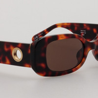These rectangular sunglasses from the LINDA FARROW collection are sculpted from Italian acetate and hand polished to achieve a glossy high-shine. Crafted from rich tortoise shell the frame has built in nose pads and rounded temple tips to ensure a comfortable fit. Details -100% UV protected soild lenses -Acetate frame with Acetate temples -Made in Japan -sku:LFL1117C2SUN Size & Fit 52mm lens width 20mm bridge width 140mm temple length