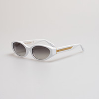 Introducing the Lyra Oval Sunglasses in White, a true hero of our Spring/Summer ‘25 collection. This exquisite piece is adorned with yellow gold detailing across the temples, creating a subversive elegance with the white contrasting across the acetate temples. Crafted to perfection, the Lyra Sunglasses are the epitome of understated luxury, designed to complement the most discerning of wardrobes. Details -Country of origin: Japan -100% UV protected solid lenses -Acetate frame with acetate temples -Acetate Made in Italy -sku:LFL1540C2SUN Size & Fit 59mm lens width 18mm bridge width 140mm temple length "