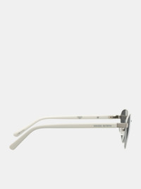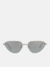 LINDA FARROW x MAGDA BUTRYM sunglasses in silver & grey, metal construction, cat-eye frames, grey-tinted lenses, adjustable nose pads, temple logo engraving. Made in Japan One Size