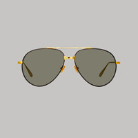Introducing the Marcelo Aviator Sunglasses from the A/W '23 collection, crafted from yellow gold plated titanium aviator outlined with black coating and paired with solid grey lenses. The style is completed with our sleek tapered temples and adjustable nose pads for a comfortable fit.
