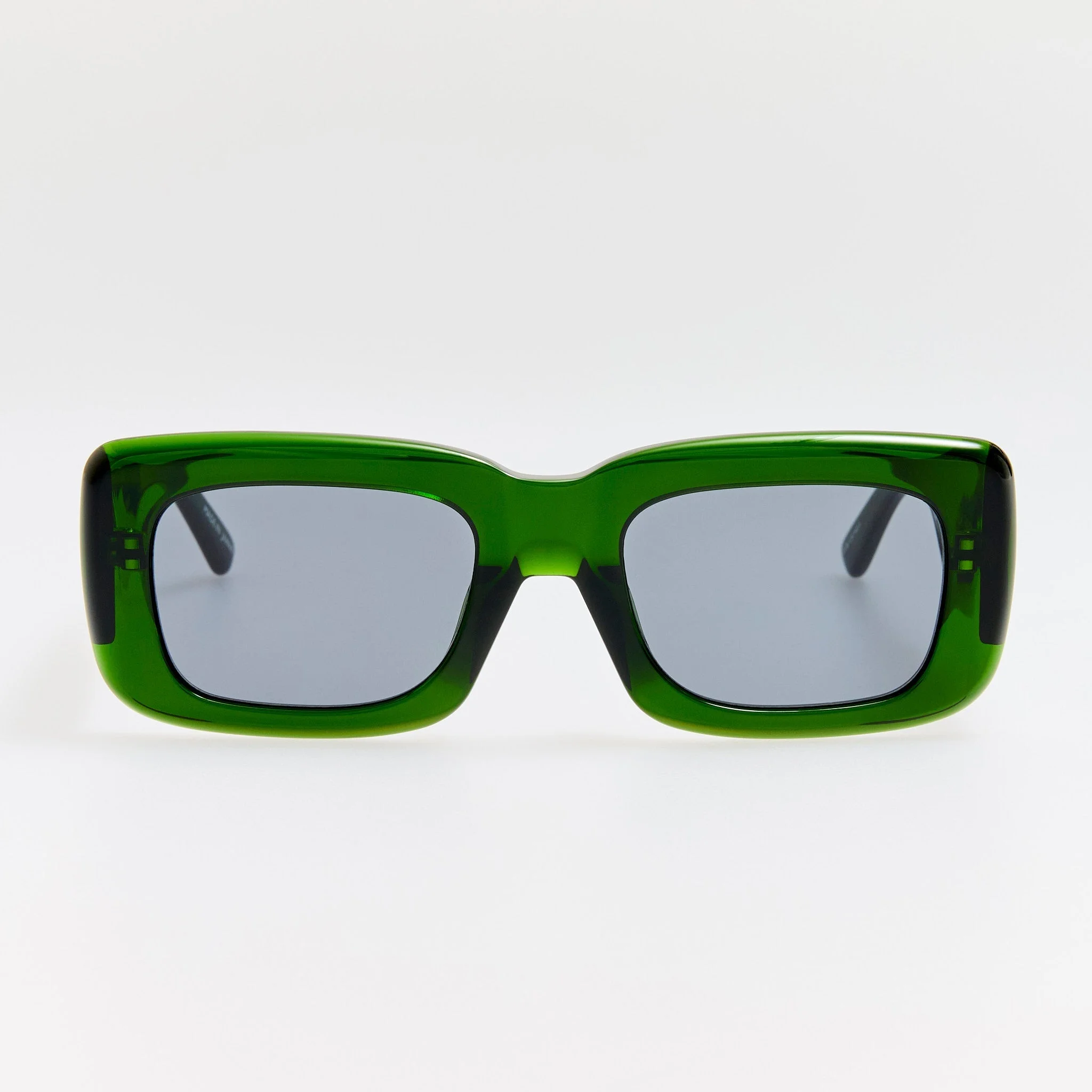 The Marfa rectangular frame is crafted from Italian acetate in green. Fitted with grey lenses offering full UV protection. The frame features sculpted nose pads for a tailored fit. Wide statement temples are detailed with gold branding This is a collaboration with Milan - based fashion brand The Attico. The collection translates The Attico’s confident, feminine aesthetic into a range of refined sunglasses featuring vibrant hues, sculptural silhouettes, and modern attitude. Details -Country of origin: Japan -100% UV protected solid lenses -Acetate frame with acetate temples -Acetate Made in Italy -sku: ATTICO3C35SUN Size & Fit 52mm lens width 22mm bridge width 140mm temple length