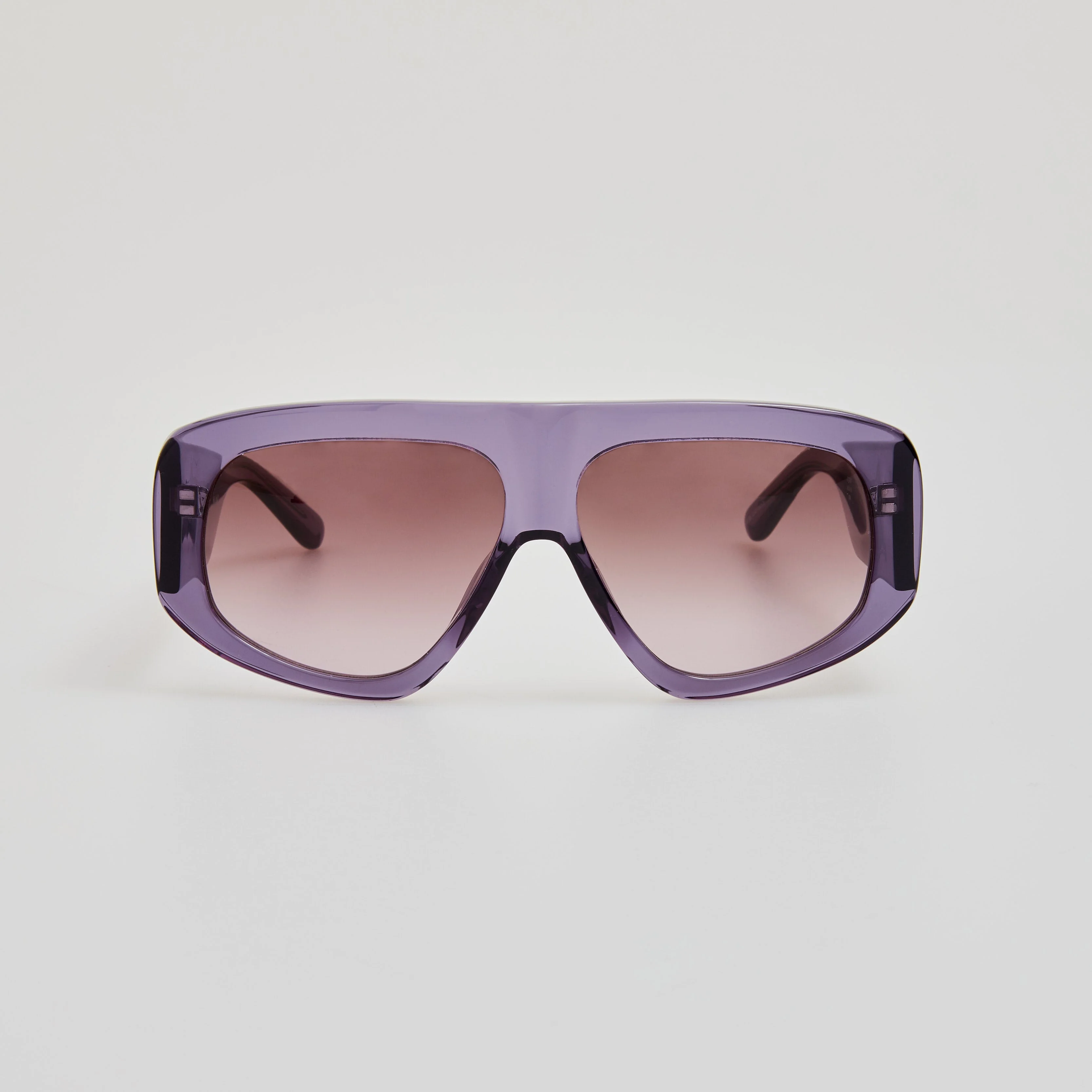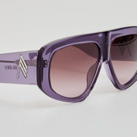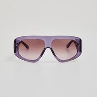 The Milano oversized aviator frame is sculpted from chunky purple acetate, highly polished for a luxurious finish. Wide statement temples are detailed with gold branding and the style is fitted with solid purple lenses for 100% UV protection. The frame features sculpted nose pads for a tailored fit. Details -Country of origin: Japan -100% UV protected lenses -Acetate frame with acetate temples -sku:ATTICO57C7SUN Size & Fit 58mm lens width 20mm bridge width 145mm temple length