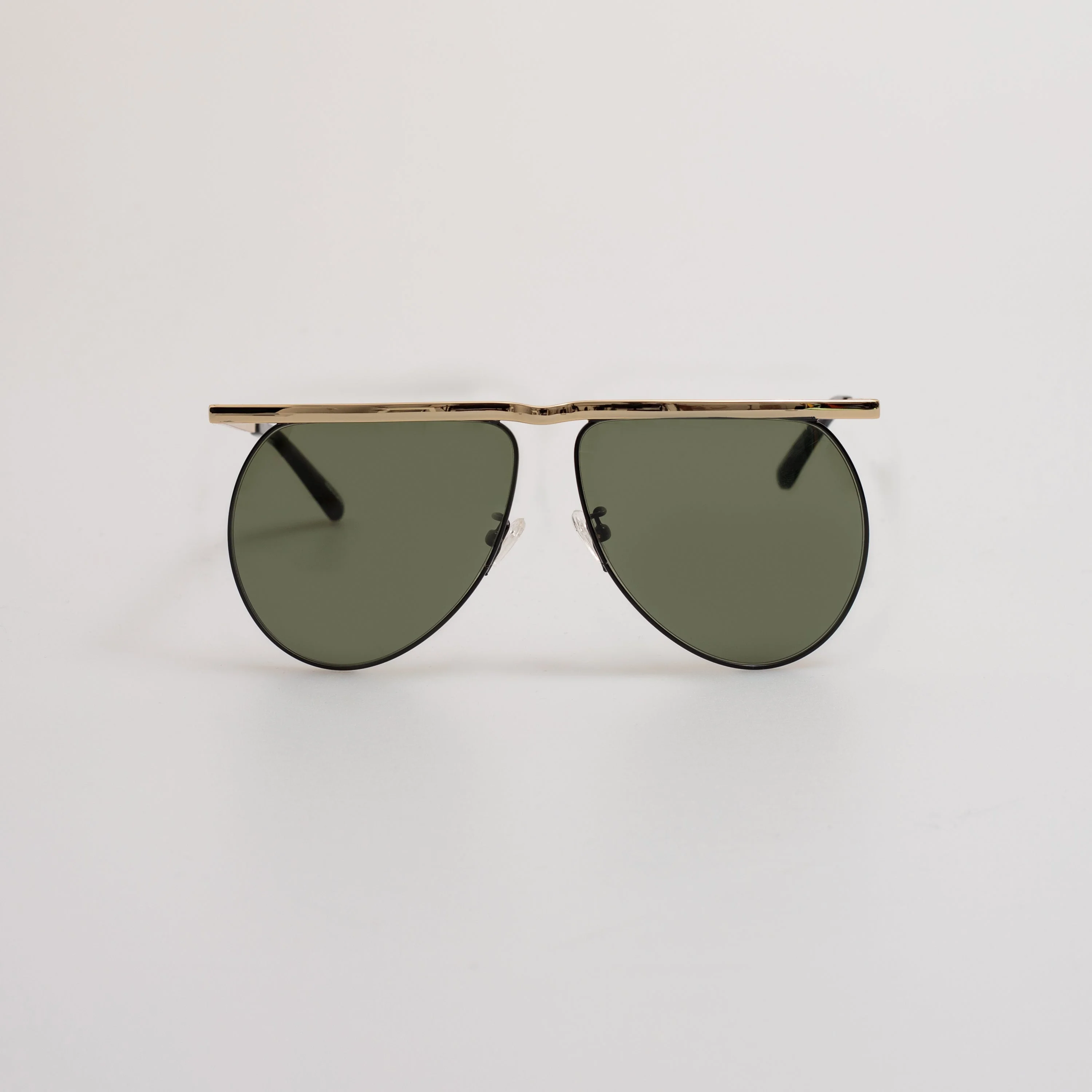 Introducing the Mina from our collaboration with Milan fashion house The Attico. These aviator sunglasses are realised in a yellow gold stainless steel and fitted with green lenses. Details " -Country of origin : Japan -Stainless Steel Frame -sku:ATTICO65C1SUN " Size & Fit 62mm lens width 13mm bridge width 145mm temple length "