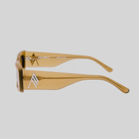 The Mini Marfa rectangular frames are sculpted from mastice Italian acetate, highly polished for a luxurious finish. Temples are detailed with gold branding and the style is fitted with solid peach lenses for 100% UV protection. The frame features sculpted nose pads for a tailored fit. Details -Country of origin: Japan -100% UV protected lenses -Acetate frame with acetate temples -sku:ATTICO16C28SUN Size & Fit 52mm lens width 19mm bridge width 140mm temple length