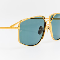 This product is a limited edition of 70. The edition number is printed on the inside of the temple #/70. The Miranda oversized frame is crafted from 22k gold plated pure Japanese titanium and fitted with deep green lenses offering full UV protection. The nose bridge features a unique, subtle twist design, adding an artistic touch. The frame is fitted with adjustable titanium nose pads that offer a tailored fit by allowing bespoke positioning for enhanced comfort. Details -Country of origin: Japan -100% UV protected solid lenses Titanium frame with titanium temples -Titanium Made in Japan -sku: LFL1596C2SUN Size & Fit 60mm lens width 14mm bridge width 145mm temple length