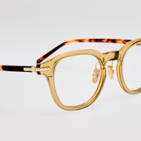 The Nouvel optical frame is crafted from kaki Italian acetate. Featuring a classic D-frame silhouette, this design is elevated by 22 karat light gold-plated hardware for a subtle touch of luxury. Featuring contrasting tortoiseshell temples the laminated sculpted nose pads ensure comfort and stability, making it an ideal companion for all-day wear. Details -Country of origin: Japan -Optical lens free from prescription -Acetate frame with acetate temples -sku:LF95AC4OPT Size & Fit 50mm lens width 23mm bridge width 145mm temple length