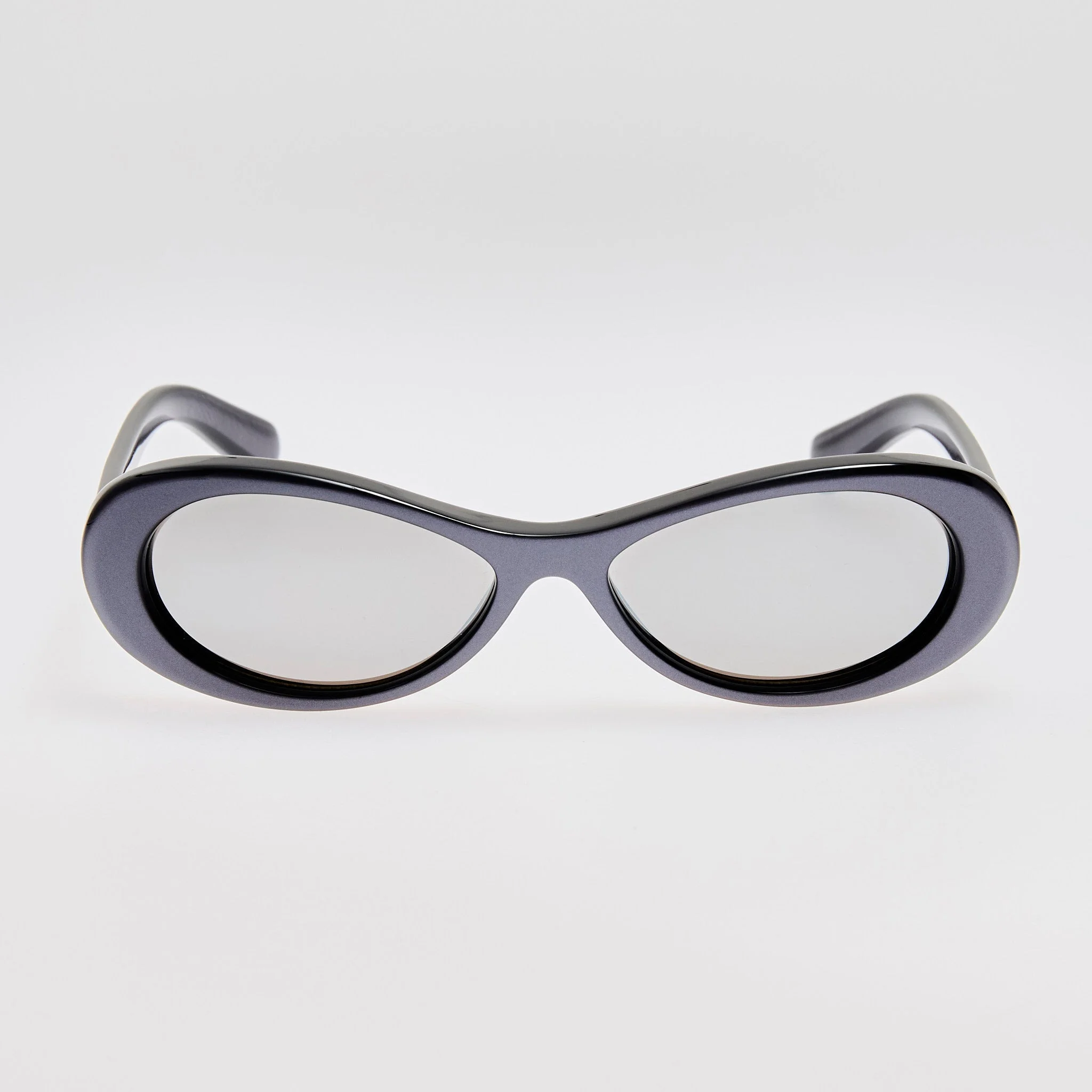 Crafted in metallic gun acetate, the Nuvola sunglasses offer a soft oval silhouette , silver nylow lenses offer 100% UV protection. Designed with sculpted nose pads for comfort, the temples are finished with subtle silver detailing. Details -Country of origin: Japan -100% UV protected lenses -Acetate frame with acetate temples -sku:JAC135C2SUN Size & Fit 63mm lens width 12mm bridge width 135mm temple length