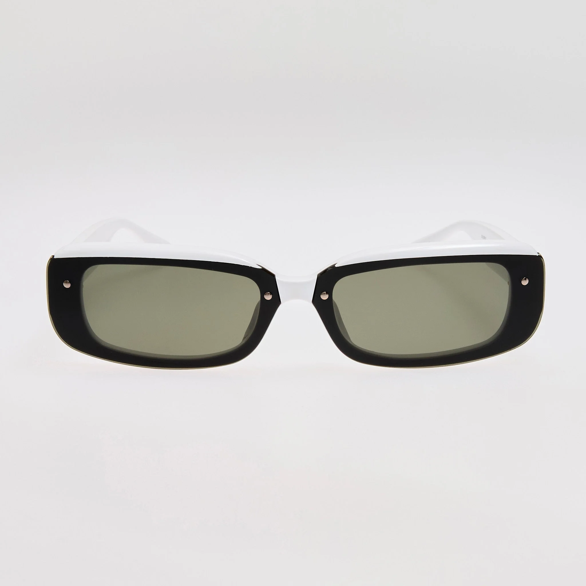 Introducing the FLICK sunglasses, a rectangular frame crafted from white Italian acetate, delivering clean lines and a confident presence. Fitted with solid grey lenses that offer 100% UV protection. This frame is fitted with sculpted acetate nose pads, seamlessly integrated for a sleek finish and a comfortable fit across most face shapes. Details -Country of origin: Japan -100% UV protected lenses -Acetate frame with acetate temples -sku:LFL1591C2SUN Size & Fit 72mm lens width 10mm bridge width 140mm temple length