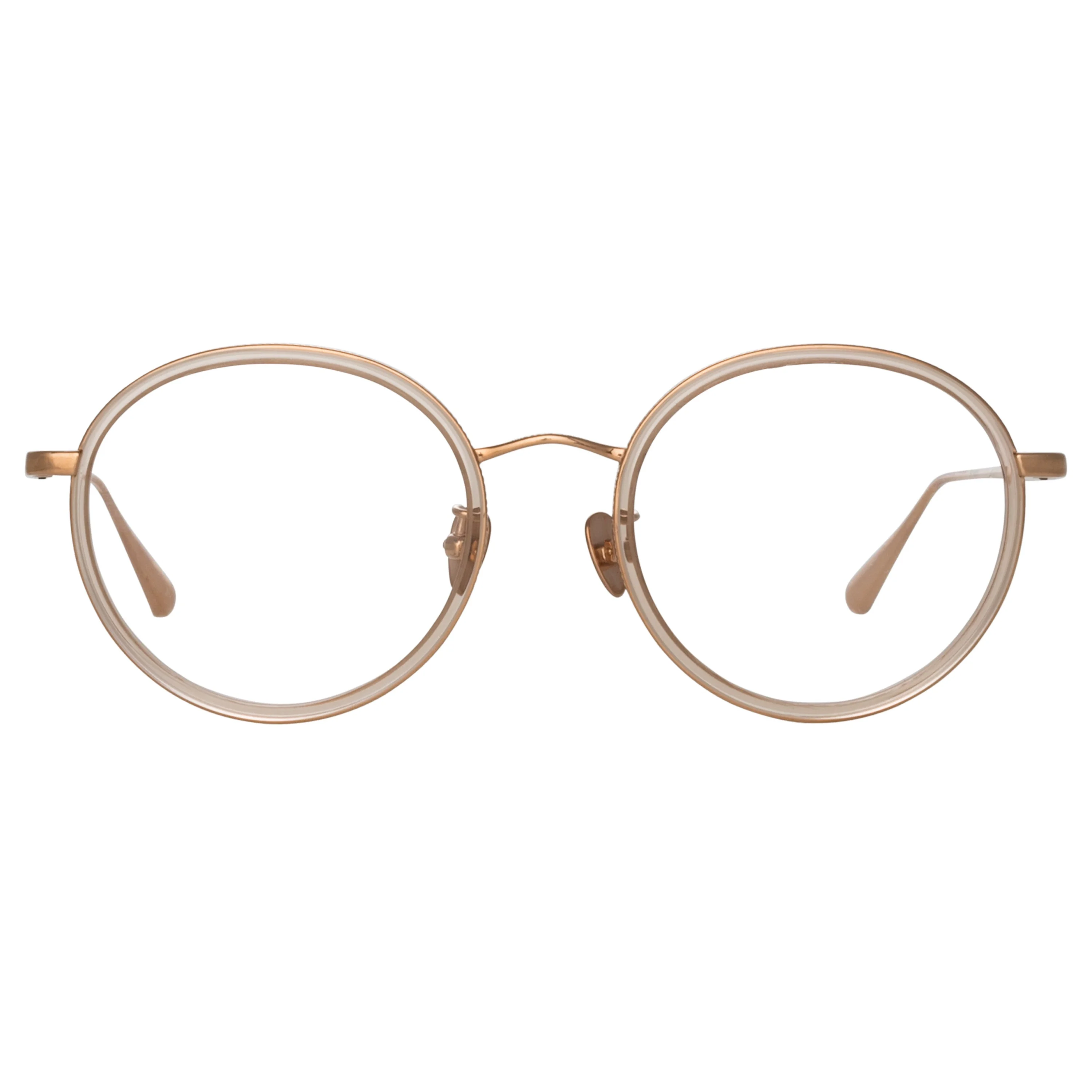 A striking balance of finely sculpted acetate and smooth shiny titanium lends these round optical frames their allure. The Sato optical frame from the LINDA FARROW collection is formed from a finely stepped recycled ash acetate rim encircled with a highly polished 22 carat rose gold plated titanium brow which is held in place with a fine gold wire running beneath the eye. Keep your frames protected in the LINDA FARROW travel case. Details -Optical lens free from prescription -Titanium frame with titanium temples -Titanium Made in Japan sku:LFL1452C3OPT Size & Fit 50mm lens width 19mm bridge width 146mm temple length