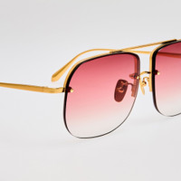 The classic aviator silhouette receives a contemporary update with the Seren Aviator Sunglasses. Expertly crafted from luxurious 22 carat yellow-gold Japanese titanium and featuring gradient red lens. Adjustable nose pads offer a tailored fit by allowing bespoke positioning for enhanced comfort. They are universal and particularly suited for those with a lower nose bridge, as they provide custom support. Details -Country of origin: Japan -100% UV protected lenses -Titanium frame with titanium temples -sku:LFL1539C6SUN Size & Fit 62mm lens width 14mm bridge width 140mm temple length
