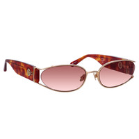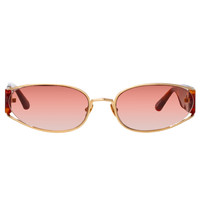 Shelby brings statement energy as a key piece for the season. The sunglasses are spun from 18 carat light gold plated titanium which sweeps back from the lens to reveal a cat eye silhouette within the frame.