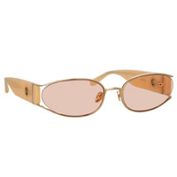 Shelby brings statement energy as a key piece for the season. The sunglasses are spun from 22 carat yellow gold plated titanium which sweeps back from the lens to reveal a cat eye silhouette within the frame. Keep your frames protected in the LINDA FARROW travel case. Details -100% UV protected solid lenses -Acetate frame with acetate temples -Titanium Made in Japan -sku:LFL1157C5SUN Size & Fit 62mm lens width 2mm bridge width 145mm temple length