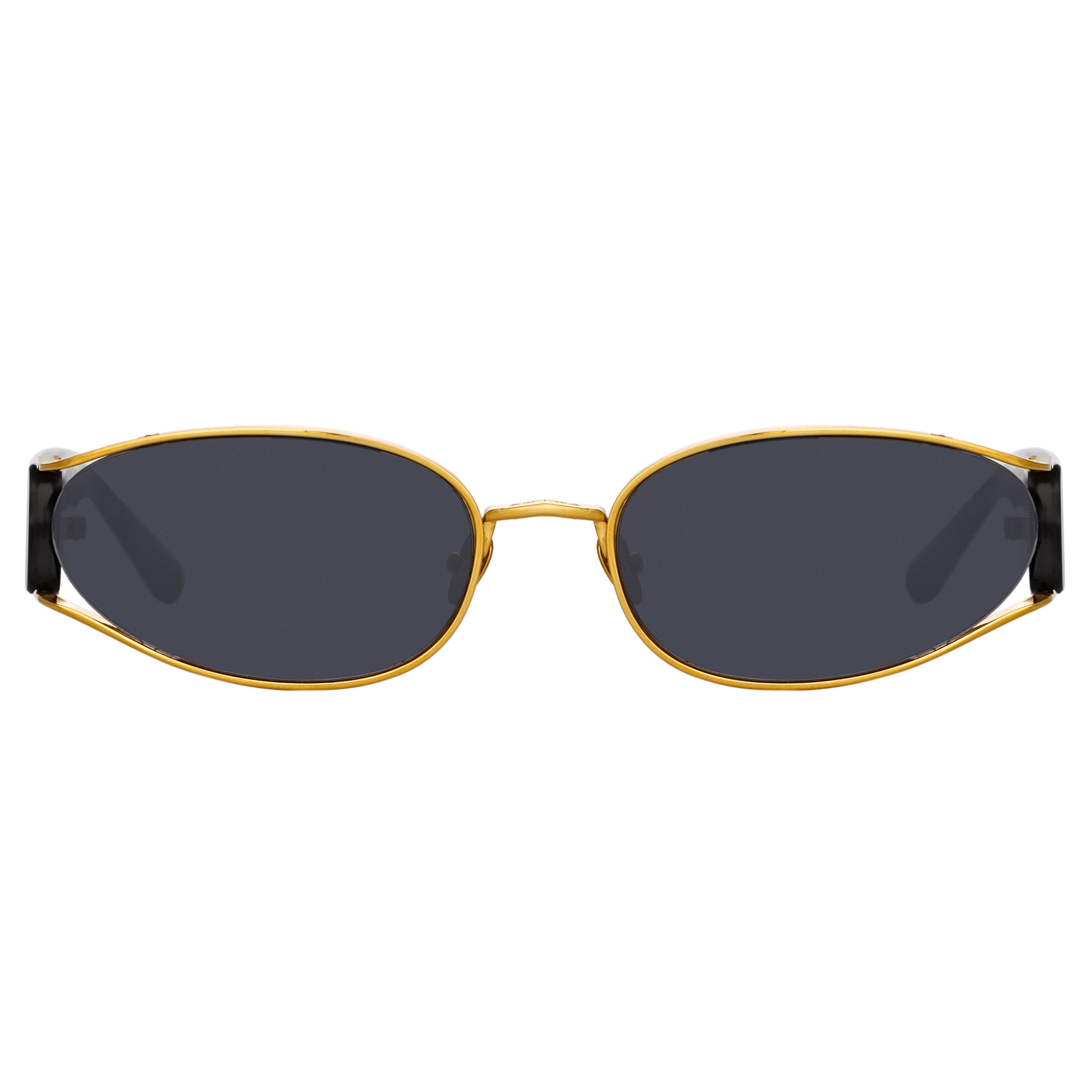 Shelby brings statement energy as a key piece for the season. The sunglasses are spun from 22 carat yellow gold plated titanium which sweeps back from the lens to reveal a cat eye silhouette within the frame. Keep your frames protected in the LINDA FARROW travel case. Details -100% UV protected solid lenses -Acetate frame with acetate temples -Titanium Made in Japan -sku:LFL1157C1SUN Size & Fit 62mm lens width 2mm bridge width 145mm temple length