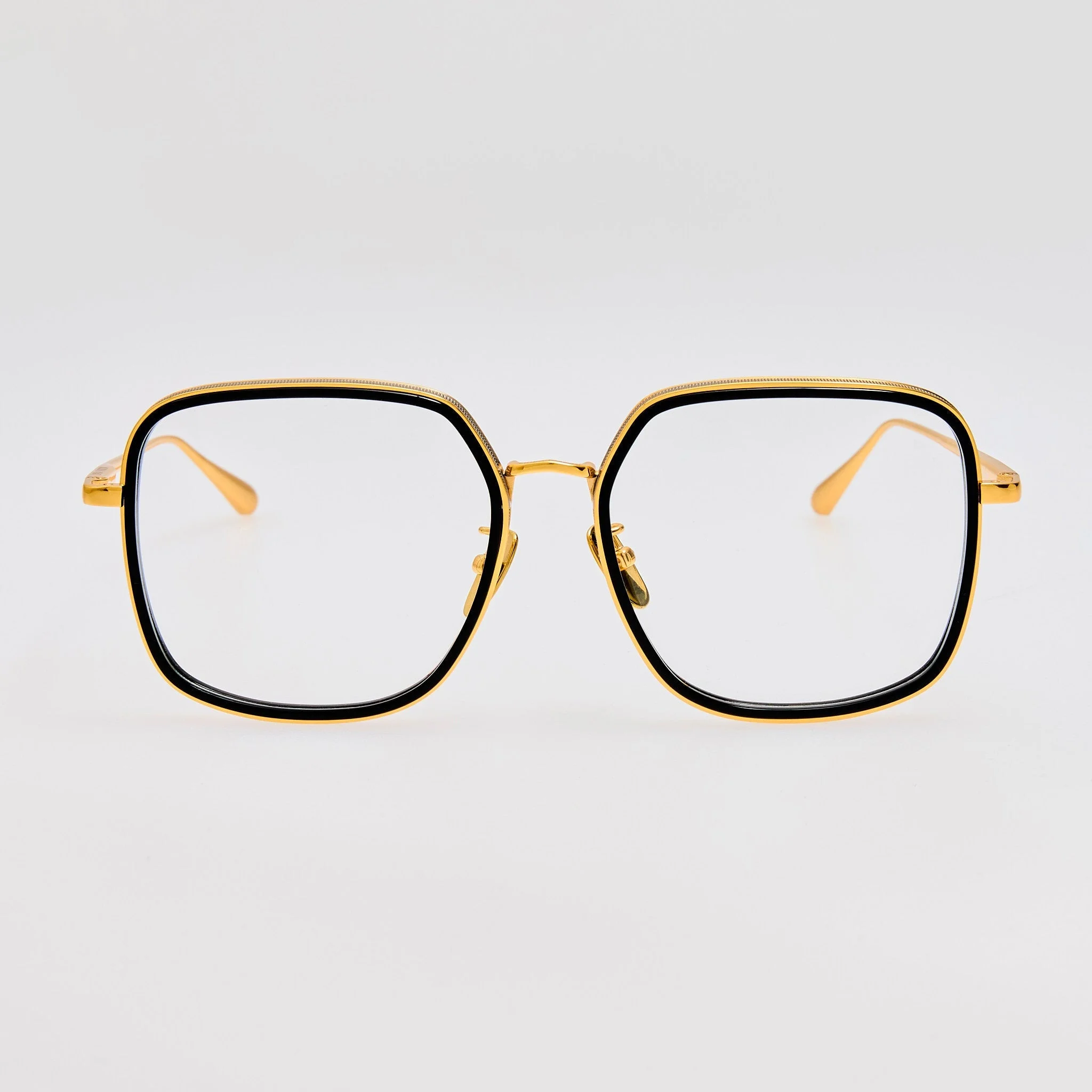 Introducing the Alicia frame. Crafted from 22 karat yellow gold-plated pure Japanese titanium, this frame features contrasting black rim and sculpted adjustable nose pads for all-day comfort and precision fit. Details -Country of origin: Japan -Optical lens free from prescription -Titanium frame with titanium temples -sku:LFL1581C1OPT Size & Fit 56mm lens width 17mm bridge width 145mm temple length