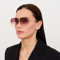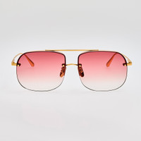The classic aviator silhouette receives a contemporary update with the Seren Aviator Sunglasses. Expertly crafted from luxurious 22 carat yellow-gold Japanese titanium and featuring gradient red lens. Adjustable nose pads offer a tailored fit by allowing bespoke positioning for enhanced comfort. They are universal and particularly suited for those with a lower nose bridge, as they provide custom support. Details -Country of origin: Japan -100% UV protected lenses -Titanium frame with titanium temples -sku:LFL1539C6SUN Size & Fit 62mm lens width 14mm bridge width 140mm temple length