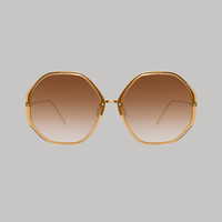 Exuding 70s glamour, these oversized hexagonal sunglasses from the core collection are named after LINDA FARROW's daughter-in-law. The Alona frames follow classic design elements of the brand executed with precision. Details -100% UV protected ZEISS lenses -Acetate and titanium frame with titanium temples -Made in Japan -sku: LFL901C7SUN Size & Fit 59.5mm lens width 17.5mm bridge width 140mm temple length