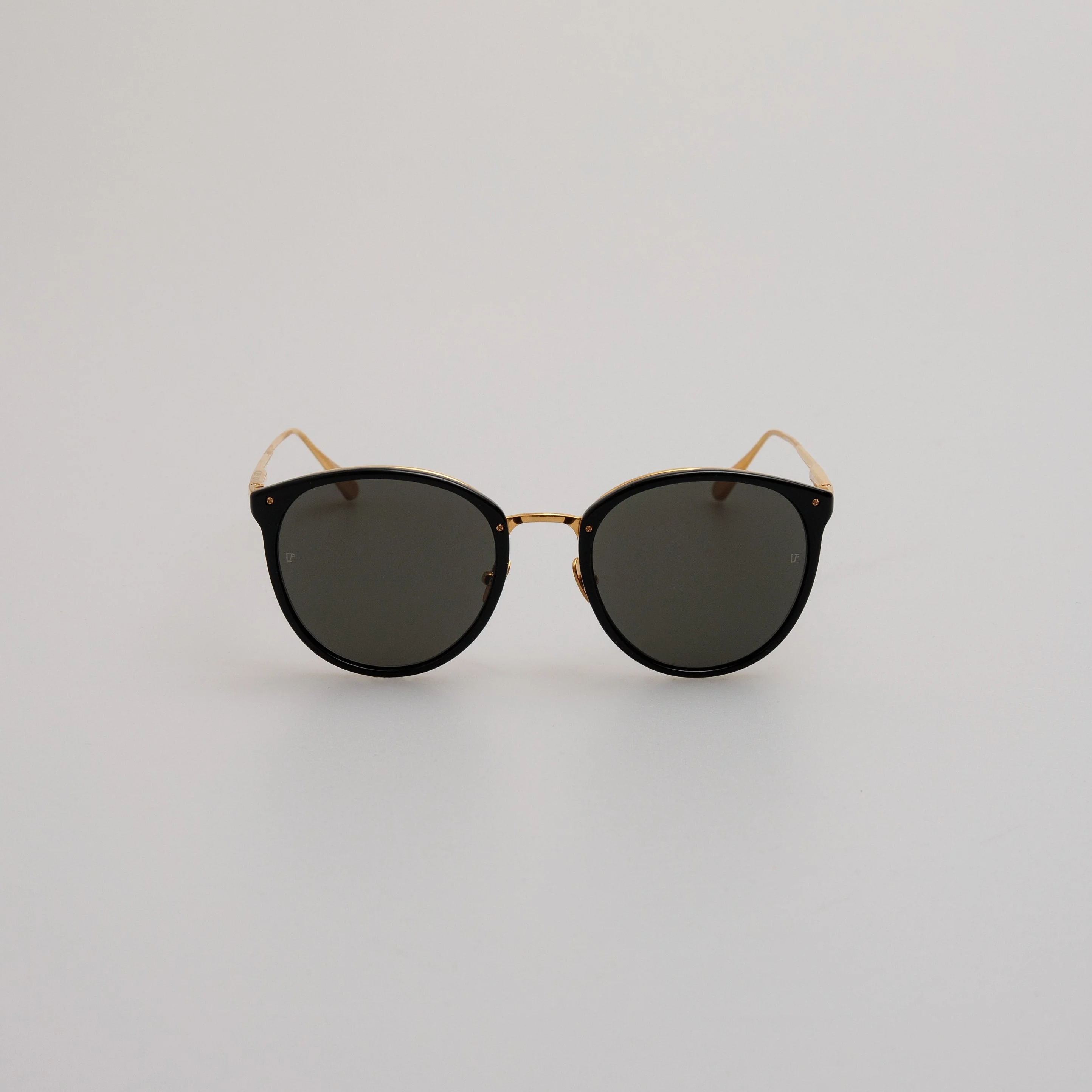 The Calthorpe takes its name from the location of the brand's HQ on Calthorpe Street in London. Part of the core collection, the style employs a signature LINDA FARROW design language. Finely sculpted recycled black acetate rims are paired with a delicate 22 carat yellow gold plated titanium frame work which runs along the inner brown and into sleek tapered temples. Fitted with solid grey ZEISS technology lenses offer anti-glare and 100% UV protection. Adjustable nose pads allow for a tailored fit. Details -100% UV protected ZEISS lenses -Acetate frame with titanium temples -Made in Japan -sku: LFL251C13SUN Size & Fit 51mm lens width 20mm bridge width 145mm temple length