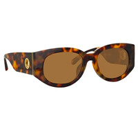 Formed from rich tortoise shell acetate these sculpted sunglasses from the LINDA FARROW collection are hand polished for a glossy finish. The rounded D-frame style features a gold-plated titanium eyelet set into the temple monogrammed with 'London 1970' to mark the founding of the brand. Details -100% UV protected soild lenses -Acetate frame with Acetate temples -Made in Japan -sku:LFL1059C2SUN Size & Fit 54mm lens width 19.5mm bridge width 145mm temple length