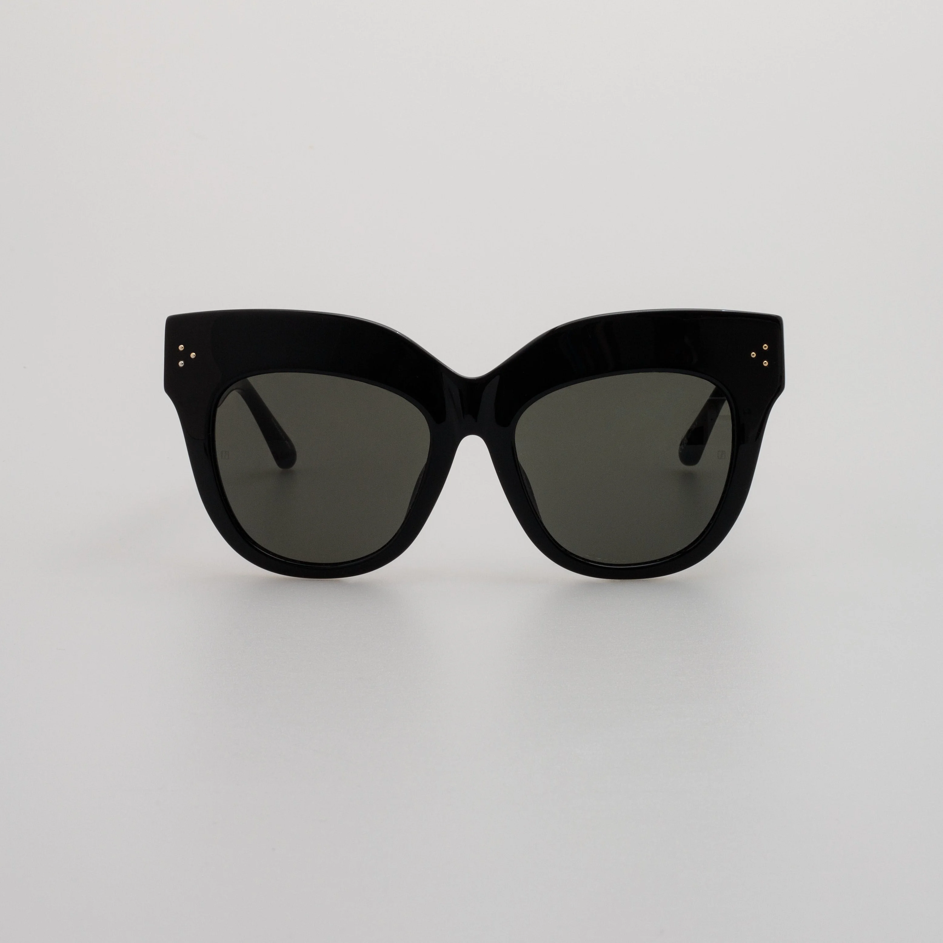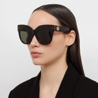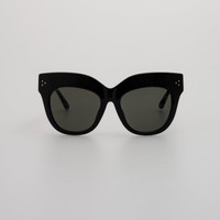 An iconic part of the collection, the Dunaway sunglasses are the embodiment of LINDA FARROW statement style. These exaggerated brow cat eye sunglasses are formed from recycled black acetate with sculpted nose pads and temple tips to provide comfort to the wearer. The temple bears our signature gold-plated titanium eyelet, compatible with our accessories, monogrammed with 'London 1970' to mark the founding of the brand. The frame is fitted with solid grey ZEISS technology lenses which offer ant-glare and 100% UV protection. Details -100% UV protected solid lenses -Acetate frame with acetate temples -Made in Japan -sku:LFL1049C1SUN Size & Fit 56mm lens width 21mm bridge width 145mm temple length