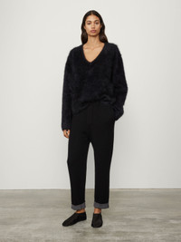 The Margareta sweater has an elegant v-neckline that's framed by a relaxed silhouette and full, long sleeves. Detailed by slim trims, the brushed cashmere makes this a subtle, standalone piece for Autumn and Winter. DETAILS Knit type: Brushed Composition: 100% cashmere Weight: 450g SIZE GUIDE * European sizing * Designed for a relaxed fit * The model is 180 cm/5’11” tall and wears a size 1 Our sizes: 0: XS 1: S-M 2: M-L