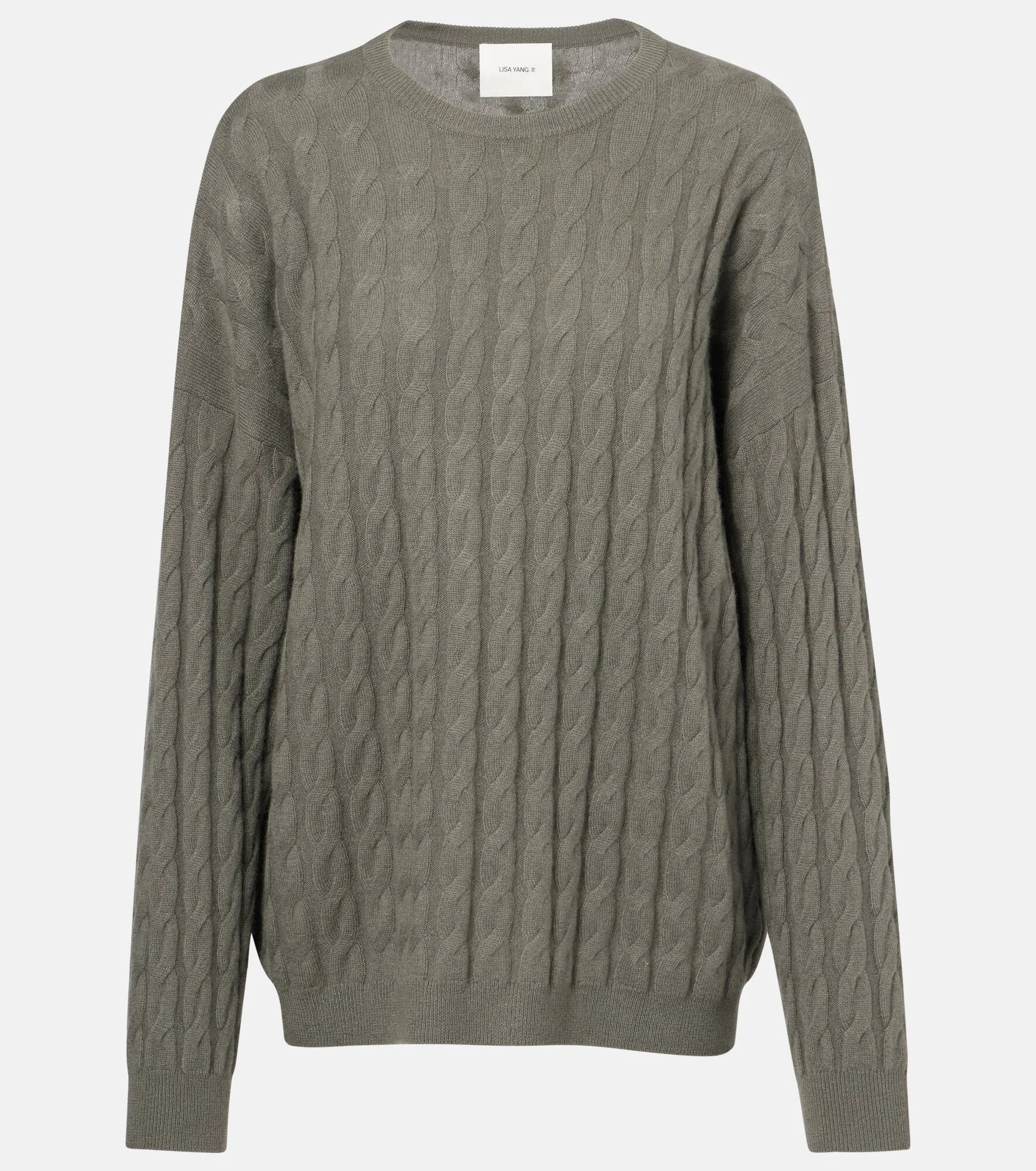 An instant classic, this slightly oversized sweater comes with an all-over cable pattern. Made from GOTS-certified cashmere, this garment embodies Lisa Yang's brand motif, which refers to the soft and gentle feeling of the fiber. Product Details - Material: 100% cashmere - Care instructions: hand wash - Made in China - Designer color name: Fern - Item color: gray - Collar: crewneck - Contains non-textile parts of animal origin - Item number: P01069913 Size & Fit - True to size - Designed for a loose fit - Stretchy fabric - Falls below the hip - The model seen in the picture is 178cm-5'10" and wearing a size 0