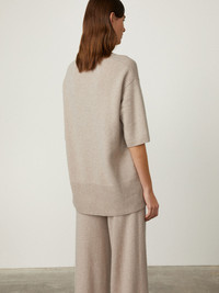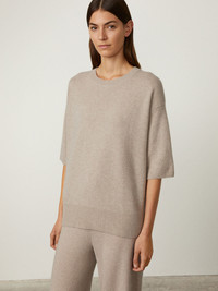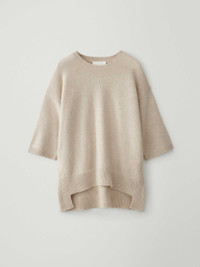 A feminine crewneck, the Camille sweater is crafted in plush, heavy knit cashmere that feels rich to the touch. The relaxed silhouette is framed by a round neck, dropped shoulders and three-quarter length sleeves, complete with a graphic step hemline which is longer at the back. DETAILS Knit type: Plain Knit Gauge: 7 Weight: 285g Composition: 100% organic cashmere SIZE GUIDE * European sizing * Designed for a relaxed fit * The model is 178 cm/5’10” tall and wears a size 1 Our sizes: Size 0: XS Size 1: S-M Size 2: M-L Camille's measurements: Size 0: * Front length: 60 cm * Back length: 66 cm * Chest: 58 cm Size 1: * Front length: 62 cm * Back length: 68 cm * Chest: 60 cm Size 2: * Front length: 64 cm * Back length: 70 cm * Chest: 62 cm