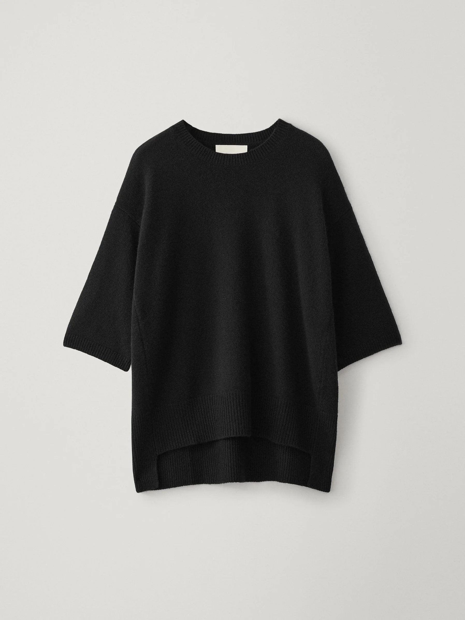 A feminine crewneck, the Camille sweater is crafted in plush, heavy knit cashmere that feels rich to the touch. The relaxed silhouette is framed by a round neck, dropped shoulders and three-quarter length sleeves, complete with a graphic step hemline which is longer at the back. DETAILS Knit type: Plain Knit Gauge: 7 Weight: 285g Composition: 100% cashmere SIZE GUIDE * European sizing * Designed for a relaxed fit * The model is 178 cm/5'10" tall and wears a size 1 Our sizes: Size 0: XS Size 1: S-M Size 2: M-L Camille's measurements: Size 0: * Front length: 60 cm * Back length: 66 cm * Chest: 58 cm Size 1: * Front length: 62 cm * Back length: 68 cm * Chest: 60 cm Size 2: * Front length: 64 cm * Back length: 70 cm * Chest: 62 cm