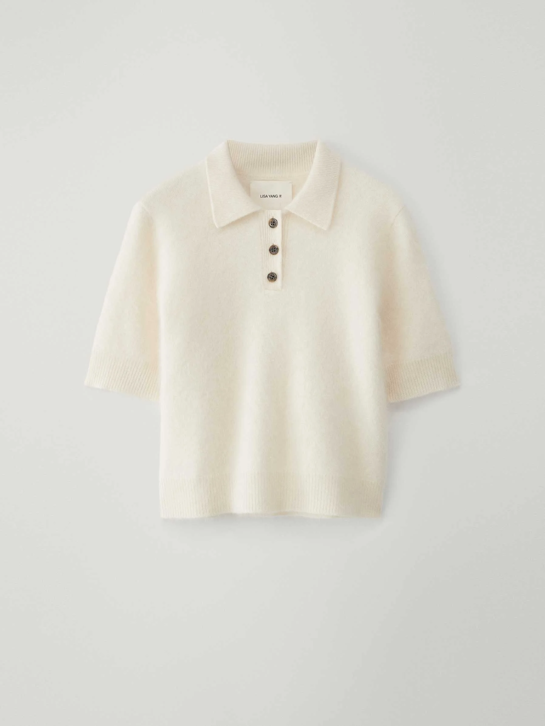 In our Signature brushed cashmere, the Carolyn top has a regular, slightly cropped fit. The collared neckline is detailed by a button front opening and neat, short sleeves. DETAILS Knit type: Brushed Weight: 225g SIZE GUIDE * Based on European sizing * Designed for a close fit * The model is 178 cm/5’10” tall and wears a size 1 Our sizes: 0: XS 1: S-M 2: M-L