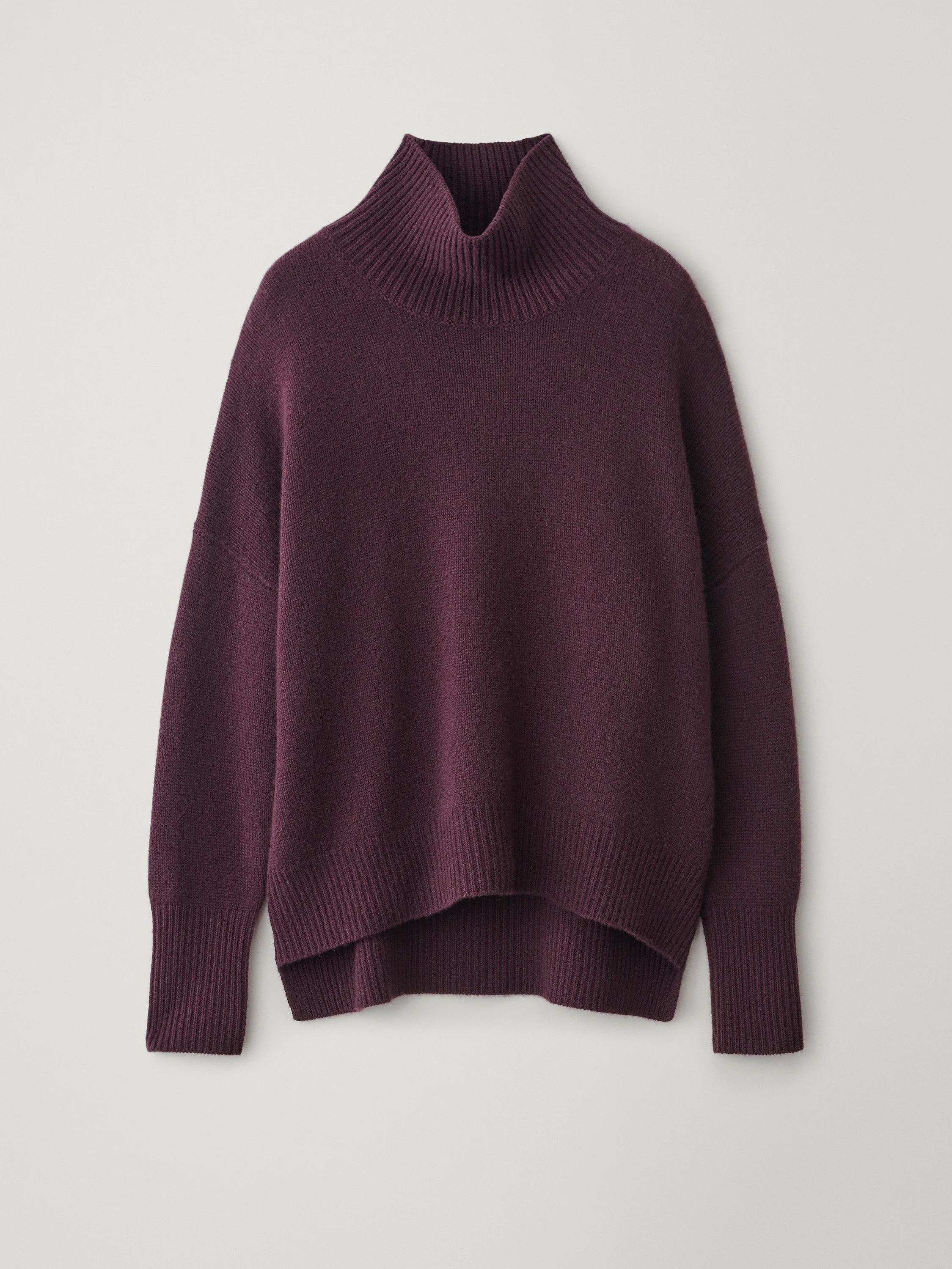 A play on proportions, the Heidi sweater is crafted in rich, heavy knit cashmere. The cocooning silhouette is made more inviting by an enveloping high neck, dropped shoulders, full-length sleeves and a hemline which falls to longer lengths at the back. DETAILS Knit type: Plain Knit Gauge: 7 Weight: 400g Composition: 100% cashmere SIZE GUIDE * European sizing * Designed for a relaxed fit * The model is 177 cm/5’9.5” tall and wears a size 1 Our sizes: Size 0: XS Size 1: S-M Size 2: M-L Heidi's measurements: Size 0: * Front length: 58 cm * Back length: 63,5 cm * Chest: 62,5 cm Size 1: * Front length: 60 cm * Back length: 65,5 cm * Chest: 64,5 cm Size 2: * Front length: 62 cm * Back length: 67,5 cm * Chest: 67 cm