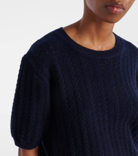 Designed in Stockholm and produced in Inner Mongolia, Lisa Yang's knitwear draws inspiration from Scandinavian minimalism and the designer's Chinese heritage. The Cecelia sweater is made from cashmere to a short-sleeved silhouette in a pointelle knit. Product Details - Material: 100% cashmere - Care instructions: hand wash - Made in China - Designer color name: Navy - Item color: blue - Contains non-textile parts of animal origin - Item number: P01069849 Size & Fit - True to size - Straight fit - Stretchy fabric - Falls to the hip - The model seen in the picture is 178cm-5'10" and wearing a size 0