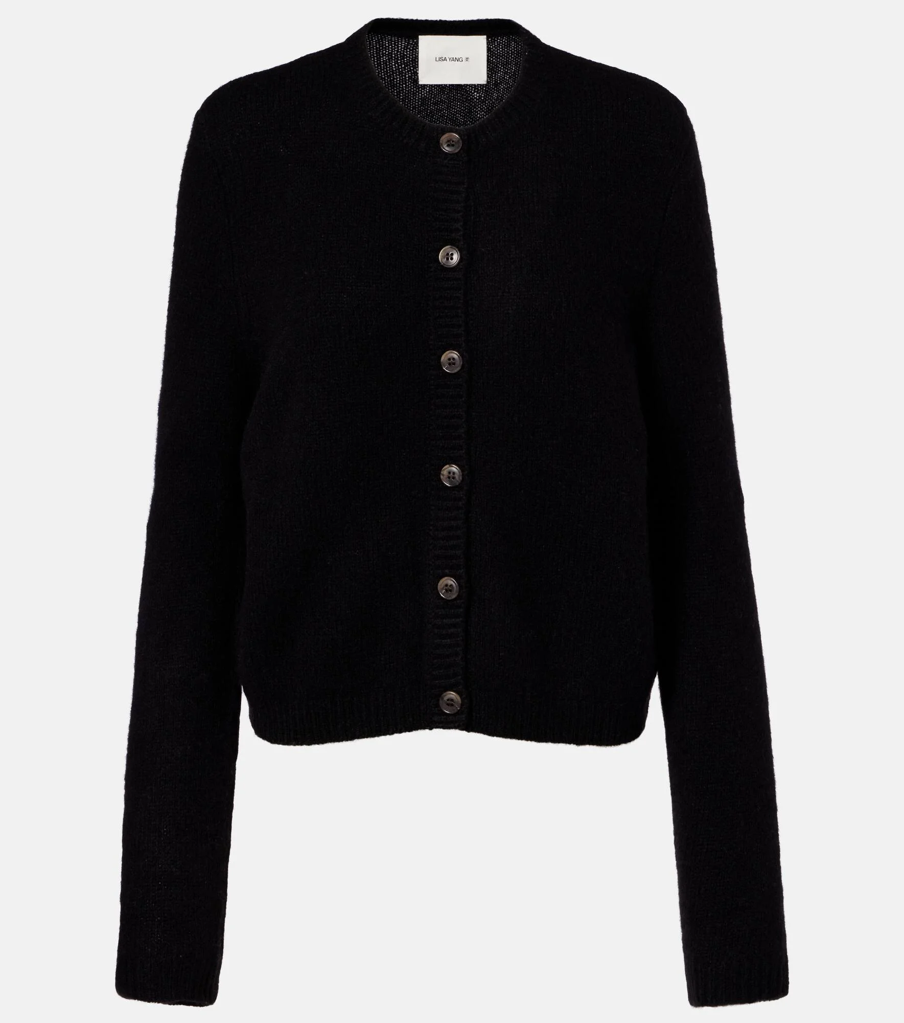 Knitted from a fine blend of cashmere and silk, the Felicia cardigan by Lisa Yang promises to elevated everyday dressing. The black piece features a round neck, long sleeves, and ribbed trims that softly punctuate its frame. Product Details - Material: 77% cashmere, 23% silk - Care instructions: dry clean - Made in Inner Mongolia - Color: black - Designer color name: Black - Item color: black - Closure: buttoned front - Cuff: ribbed - Hem: ribbed - Item number: P01134443 Size & Fit - True to size - Straight fit - Stretchy fabric - Falls to the hip - The model seen in the picture is 178cm-5'10" and wearing a size 0