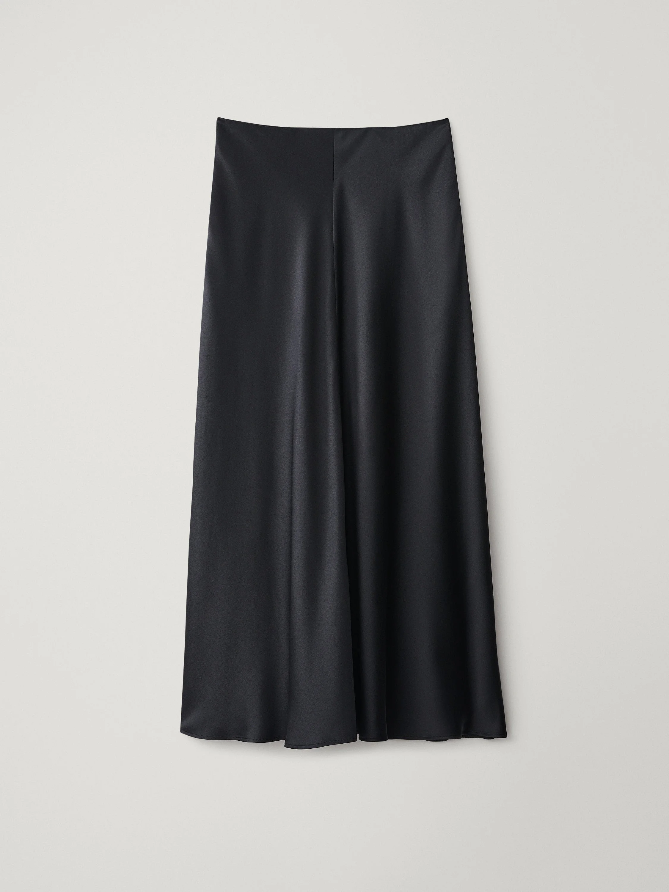 A skirt with longline proportions, the full maxi skirt is crafted in our heavy silk satin fabric with a shiny finish. The regular fit, flared silhouette has a high waist, side pockets and a concealed back zip. Wear it with silk or cashmere pieces from across the collection. DETAILS Fabrication: Woven Silk Double Georgette Composition: 100% silk Weight: 235g SIZE GUIDE * European sizing * Designed for a regular fit * The model is 177 cm/5’9.5” tall and wears a size 1 Our sizes: Size 0: XS Size 1: S-M Size 2: M-L