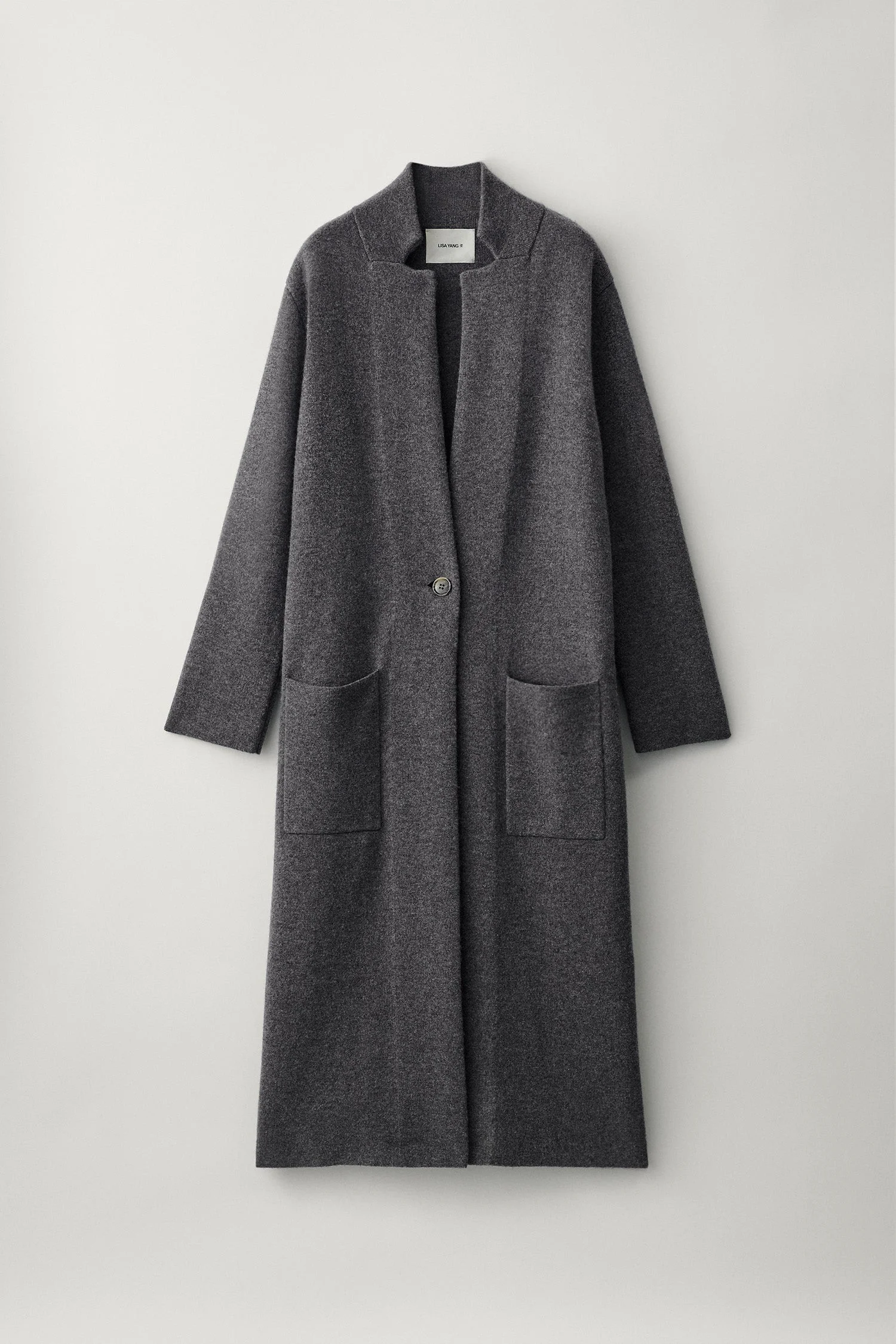 A LISA YANG mainstay, the Amie coat is crafted in our knitted double face cashmere with a luxuriously weighty hand feel. The straight, structured silhouette is detailed with notch lapels, slightly dropped shoulders, a single button closing and patch pockets. DETAILS Knit type: Double Faced Gauge: 12 Weight: 900g Composition: 100% cashmere SIZE GUIDE * European sizing * Designed for a relaxed fit * The model is 178 cm/5’10” tall and wears a size 1 Our sizes: 0: XS-S 1: S-M 2: M-L Amie's measurements: Size 0: * Length: 118 cm * Chest: 54 cm * Sleeve: 60 cm Size 1: * Length: 120 cm * Chest: 56 cm * Sleeve: 61 cm Size 2: * Length: 120 cm * Chest: 59 cm * Sleeve: 62 cm